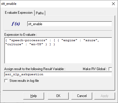 eg: This is how an Evaluate Expression module can be used to enable Azure STT in module titled: askquestion