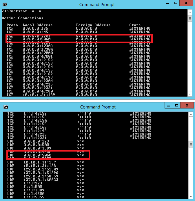 cmha Report post Posted 08/12/2015 12:44 PM We are currently using Windows Server 2012 for this. I don't see any antivirus or antimalware software installed on this and have confirmed that with our administrator that setup the machine. In addition, I also did a search of applications on my machine for the word anti and virus and found nothing. However, I am able to connect to the internet as I have pulled up this forum to test it so I can only assume the network interface is working. Windows Firewall has also been turned off to ensure I can get this working first. I also ran netstat and found that port is being listened to but have attached the 2 entries I see in regards to port 5060. Is there any way to test the interface and/or other required components? Are there any special setups in regards to a server OS? Share this post Link to post