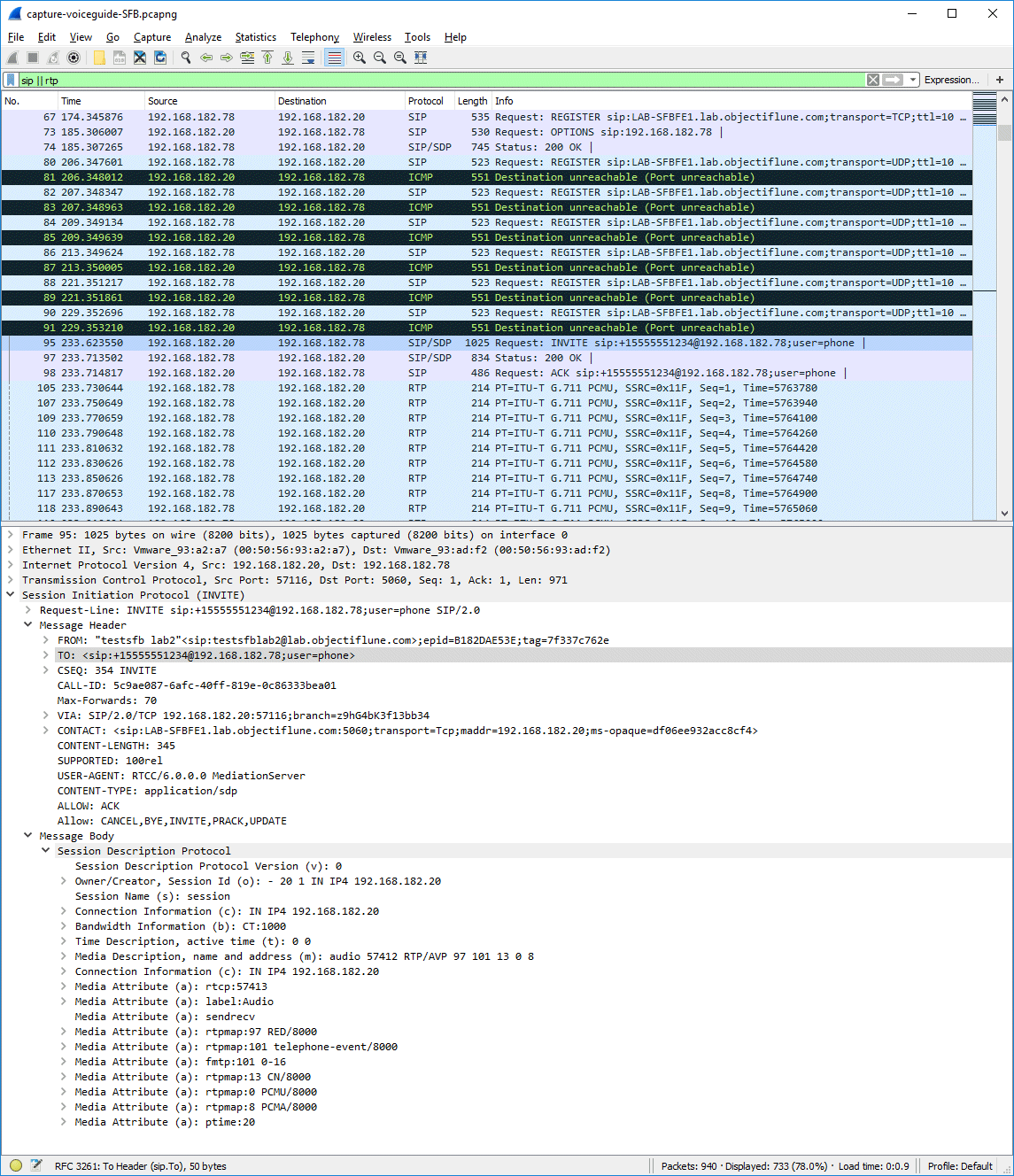 SupportTeam Report post Posted 06/06/2017 04:23 AM We can see SIP messages coming from SFB, and when SFB sends a SIP call to HMP/VoiceGuide we can see that that call is answered by HMP/VoiceGuide and SFB can see that that call was answered - and it relays the voice traffic from VoiceGuide to you - which you can then hear. So your SFB is able to use SIP to establish calls. Looks like there are some issues with voice data from SFB. No RTP packets can be seen from SFB. This should be resolved first. You may want to look at what firewalls are between SFB and HMP/VoiceGuide. Suggest disabling the firewalls temporarily and seeing if this resolves this. On what virtualization platform are you deploying this? VmWave ESXi ? As you have set up a SIP Trunk from SFB then it is most likely unnecessary for HMP/VoiceGuide to register itself with SFB, so you can remove those Registration/Authentication entries from VoiceGuide's Config.xml file. When using trunks however you may need to make call transfers by dialing on another channel and bridging the calls together (the 'Dial and Conference' option). Suggest trying to use that type of transfer after you resolved the issue of sound (ie: RTP packets) from SFB not arriving at HMP/VoiceGuide. Share this post Link to post