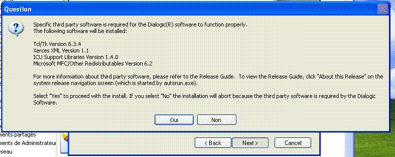 SupportTeam Report post Posted 10/24/2008 08:33 AM Trace shows the Dialogic layer could not be loaded. Are the Dialogic drivers installed on this machine? 001027.093 5 assembly ktTel path: C:\Program Files\VoiceGuide\ktTelDialogicSR60.dll 001027.578 5 ERROR v7.0.3204.33210 (Thu 09/10/2008 18:27:00.06) Load_Layer_ktTel_Dynamic [C:\Program Files\VoiceGuide\ktTelDialogicSR60.dll] : Le module spécifié est introuvable. (Exception de HRESULT : 0x8007007E) à System.Reflection.Assembly.nLoadFile(String path, Evidence evidence) à System.Reflection.Assembly.LoadFile(String path) à ..() 001027.578 5 Try running DEPENDS.EXE to check if any pre-requisite .DLLs are missing 001027.593 5 ERROR v7.0.3204.33210 (Thu 09/10/2008 18:27:00.06) mainLoad ktTel_ApiMode : La référence d'objet n'est pas définie à une instance d'un objet. à ..(String sAppPath) Share this post Link to post
