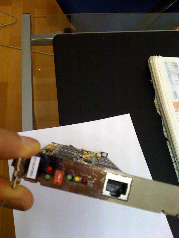 SupportTeam Report post Posted 02/10/2010 10:11 AM "Which version of Dialogic drivers is installed on this system? (See Help->About in the Dialogic DCM)">> 6.0 Which Service Update (SU) version? >> Actually there is not effect on the leds when plugin and unpluging the cable. This suggests that either there is no signal on the E1 cable, or the card is faulty. Do you want me to do a loopback test? how can I do that and how do I have to connect the board (never done this yet) You would need to connect the Tx wire pair back to the Rx wire pair. This should give you green LED on the card. Use an RJ45 plug and have the Tx and Rx wire pairs looping back to each other. Please post more photos of this card. This card does not look like a current model D/300JCT. Share this post Link to post