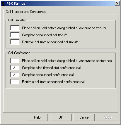 The signals sent to your PBX or Telephone Network can be configured here. VoiceGuide will generate the specified signals to command the PBX / Telephone Network to perform call transfers and conferences.