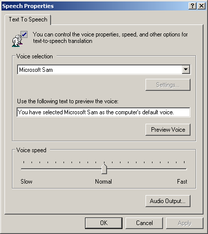 NOTE: SAPI SDK's TTSApp application should not be used to determine whether VoiceGuide can use the installed SAPI TTS engine.
