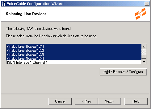 The Setup Wizard will discover all the TAPI capable telephony devices and will allow you to select which devices you would like to use with VoiceGuide: